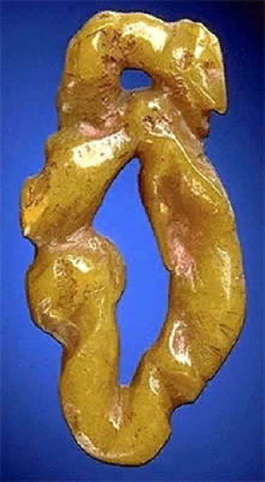 Также известна как Пара, Двойная фигура, Дублет и La Belle et la Bête (Красавица и чудовище). Художник вырезал два тела, спина к спине, симметрично изогнутые и соединённые в верхней части головы, плеч и нижней части тела. Одна представляет женщину, другая может быть животным2. Головы их разделяет пустое пространство, что наводит на мысль о том, что статуэтка использовалась в качестве кулона или подвески. В профиль и спереди тело женщины грубо иллюстрирует основные анатомические характеристики палеолитических венер Западной Европы. Обработка ног напоминает так называемую Двуглавую Даму, см. ниже. Вырезанный из фрагмента зеленовато-жёлтого змеевика и тщательно отполированный, этот предмет имеет высоту 47 мм.