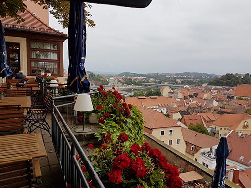 И в заключение — пару глотков горячего кофе с видом на городок из маленького уютного кафе на горе.