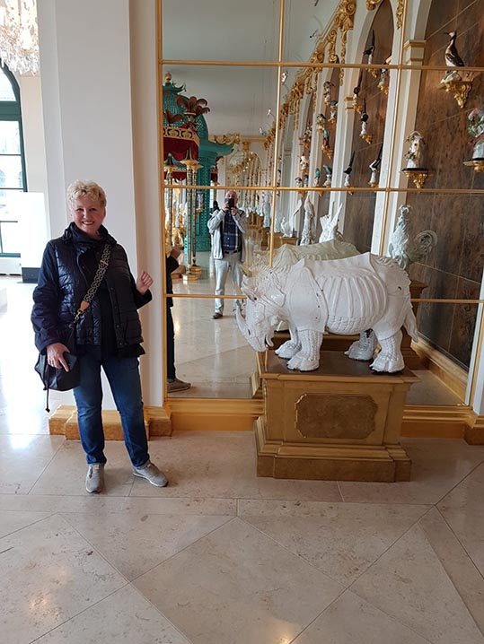 А это уже в Цвингере. Но только посмейте тронуть фарфорового носорога — как шарахнет током! Шучу, смотрительница наорёт.