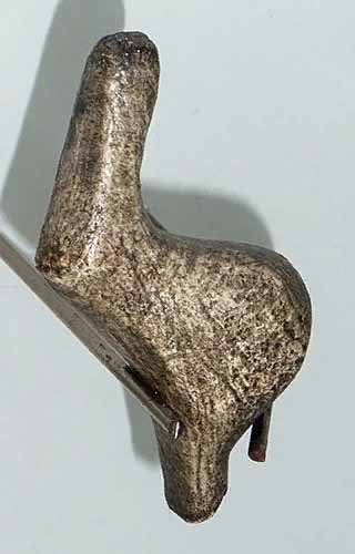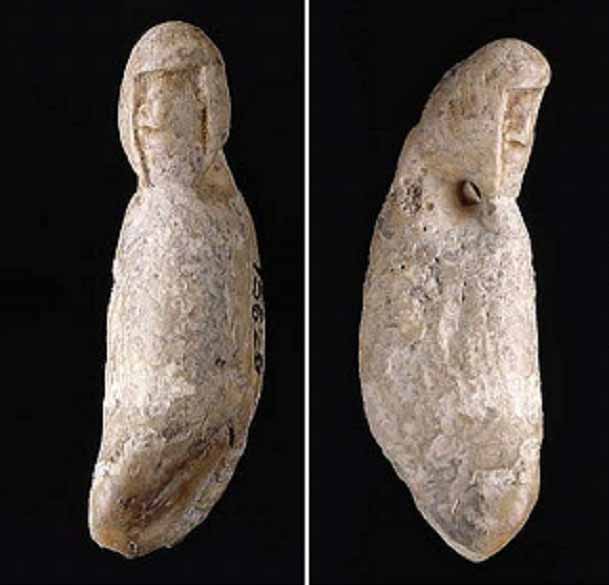 Найдена во время раскопок на острове Тразимено (Италия). Высота около 37 мм. Вырезана из стеатита. Фигурка создает «двоякое видение» и явно ассоциируется с фаллическим значением: мы вообще-то не собирались сейчас рассматривать такие фигурки, но в данном случае сделаем исключение…