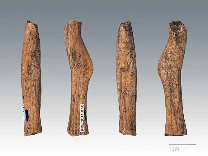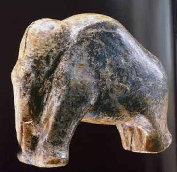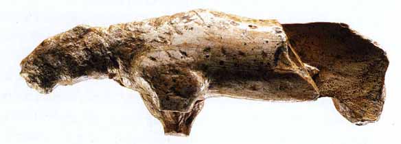 Статуэтка из кабаньего клыка, найденная при повторных раскопках в 2008 году перед пещерой Фогельхерд.