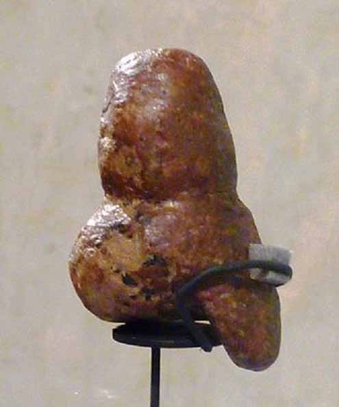 Возможно, позднепалеолитическая Венера — но без какого-либо зарегистрированного стратиграфического происхождения. Вулканическая порода (базальт или андезит). Высота 134 мм, вес 95 г.