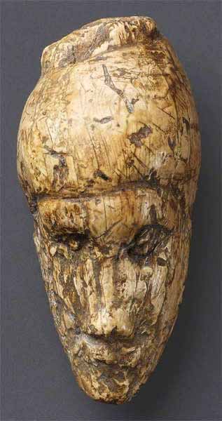 Резная скульптура из бивня мамонта — изображение головы женщины из Дольни-Вестонице с заметной асимметрией лица. В старых публикациях иногда трактовалась как голова юноши.