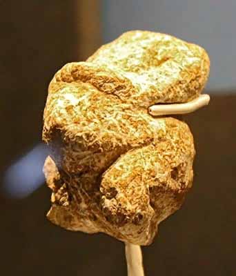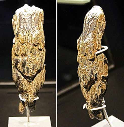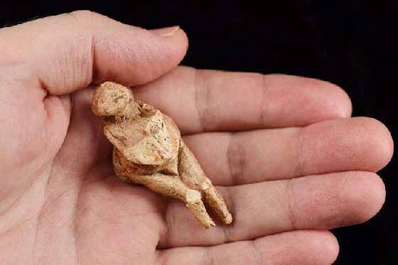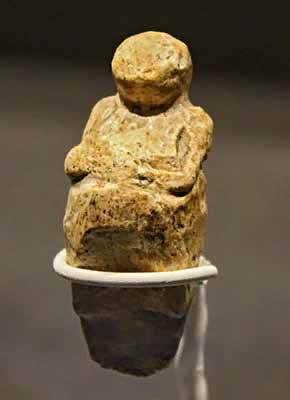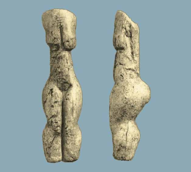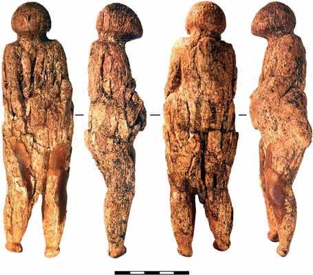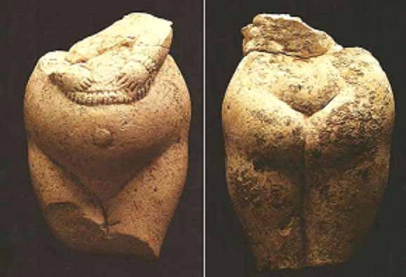 У данной статуэтки из мергеля не хватает нижней части ног и верхней части туловища: они были отбиты ещё в каменном веке. Смысл этого ритуала неясен.