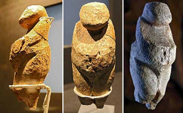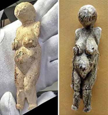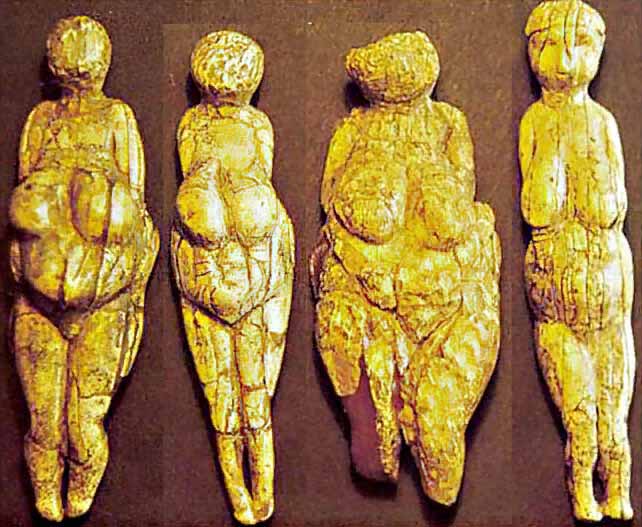 Статуэтки высотой около 10 см. Выполнены из бивня мамонта и известняка. Обнаружены на Костёнковских верхнепалеолитических стоянках в Воронежской области (Костёнки — на самом деле не отдельная стоянка, а территория на правом берегу реки Дон в районе деревень Костёнки и Борщёво, состоящая из более чем двадцати стоянок). Созданы приблизительно 23—21 тыс. лет назад носителями костёнковско-авдеевской культуры. Некоторые женские статуэтки сознательно повреждены ещё в каменном веке (фигурки из известняка): голова и нижняя часть ног были отломаны, грудь и живот отбиты намеренно. Возможно, это был какой-то ритуал.