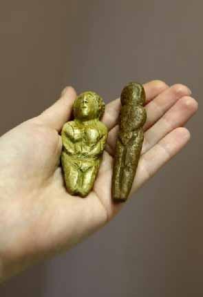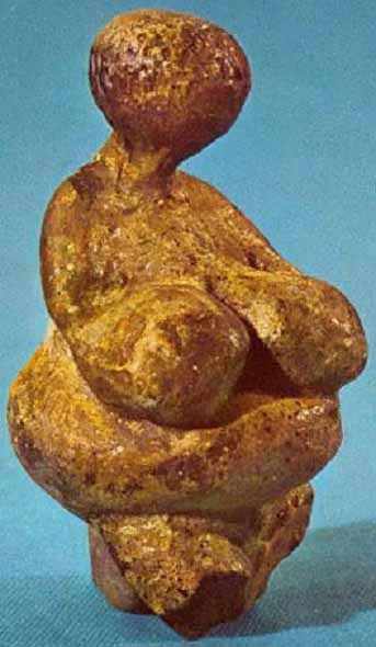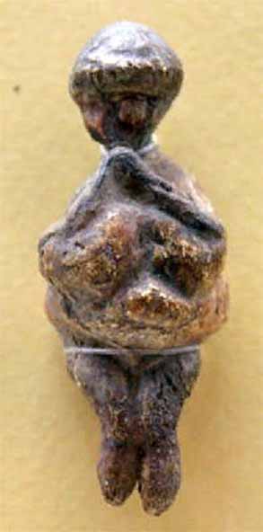 Молящаяся Венера. Эта фигурка из Гагарино высотой около 5 см, одетая в нечто похожее на фуражку, опирается руками на грудь, ладони подняты к лицу, словно в молитвенном жесте.