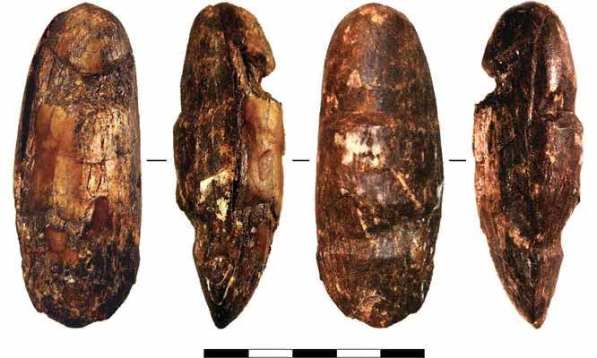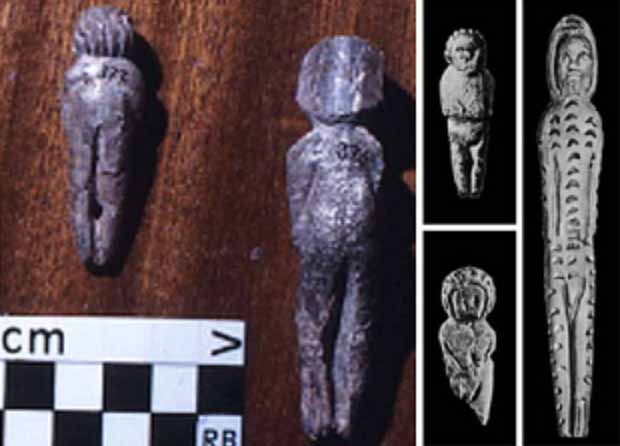 Две статуэтки, показанные здесь в разных ракурсах, обнаружены в 2005 году в Зарайском районе Подмосковья (около 130 км от Москвы в сторону Рязани). Каждая из фигурок была тщательно захоронена в отдельное хранилище-«яму», наполовину заполненную красной охрой, наполовину — сухим мелким песком. Обе фигурки примерно по 17 см в длину.
