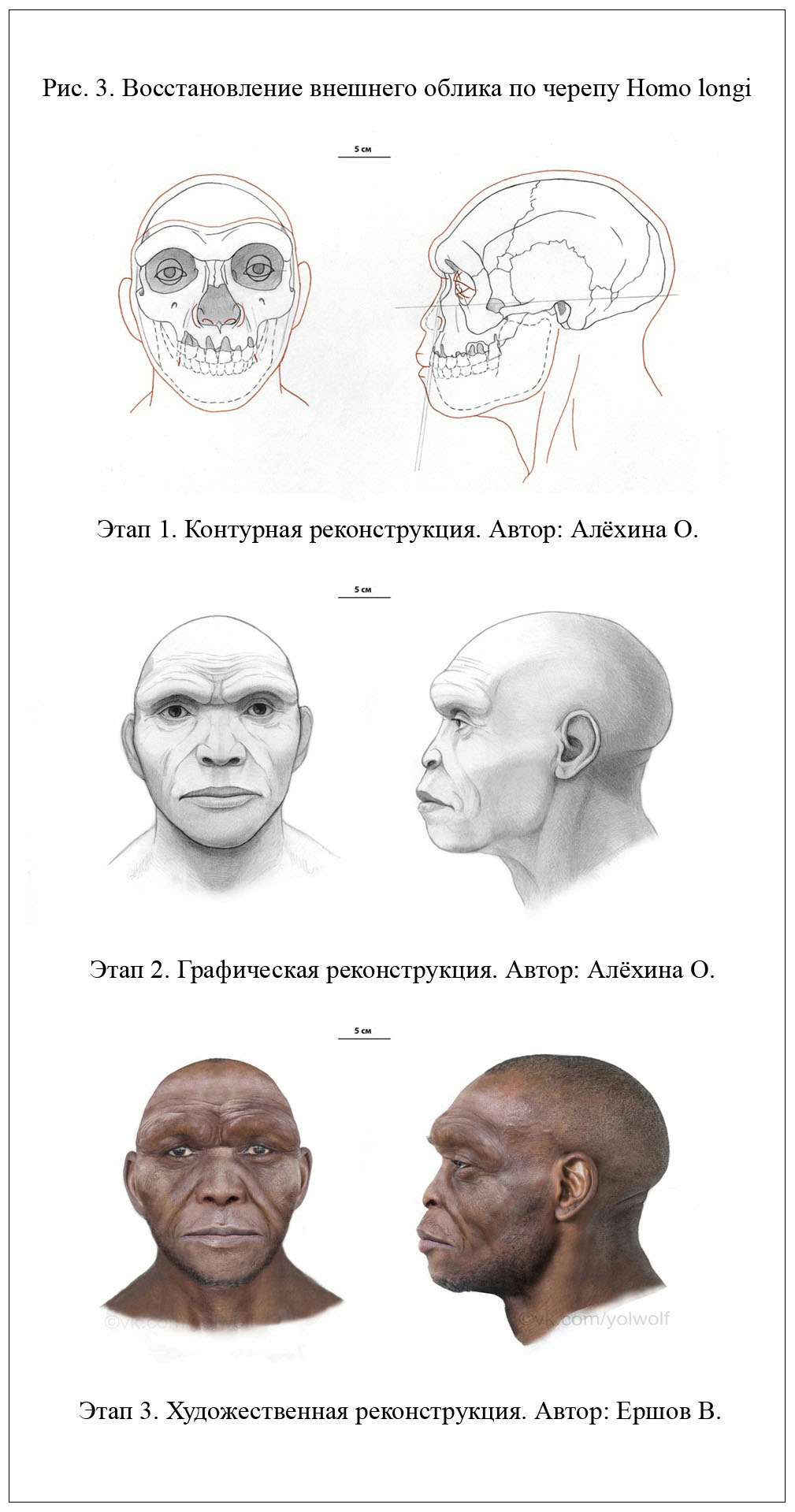 Из-за скудности фрагментов восстановление внешнего облика денисовского человека по черепу не представлялось возможным. Однако многие антропологи уверены, что череп денисовского человека давно найден и даже описан. Такие выводы основаны на изучении морфологии, географии и возраста ряда находок. Вот некоторые из них, представленные в виде линии происхождения Homo longi (рис. 1).