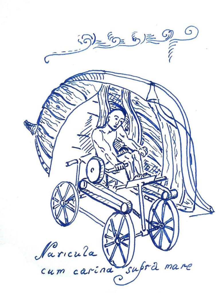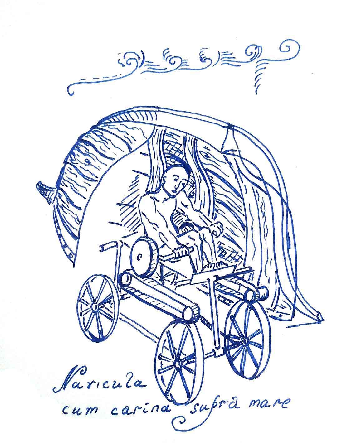 Испытывая сочувствие к морякам, посвятив ряд работ тому, чтобы облегчить их труд, францисканец не мог не слышать историй о чудесных случаях спасения тех, чья лодка перевернулась. Корпус, способный удерживать воздух и защищать несчастного от ударов волн, мог быть использован для глубоководного погружения. В отличие от легендарных героев, которые исследовали океан, опускаясь в воду в бочонке или его подобии, и которые не могли совершать какие-либо манипуляции, обладатель Navicula cum carina supra mare имел скромную возможность обозревать пространство под собою, а также, раздвинув доски, служившие ему сиденьем, спуститься вниз, чтобы закрепить под днищем своего транспорта груз.