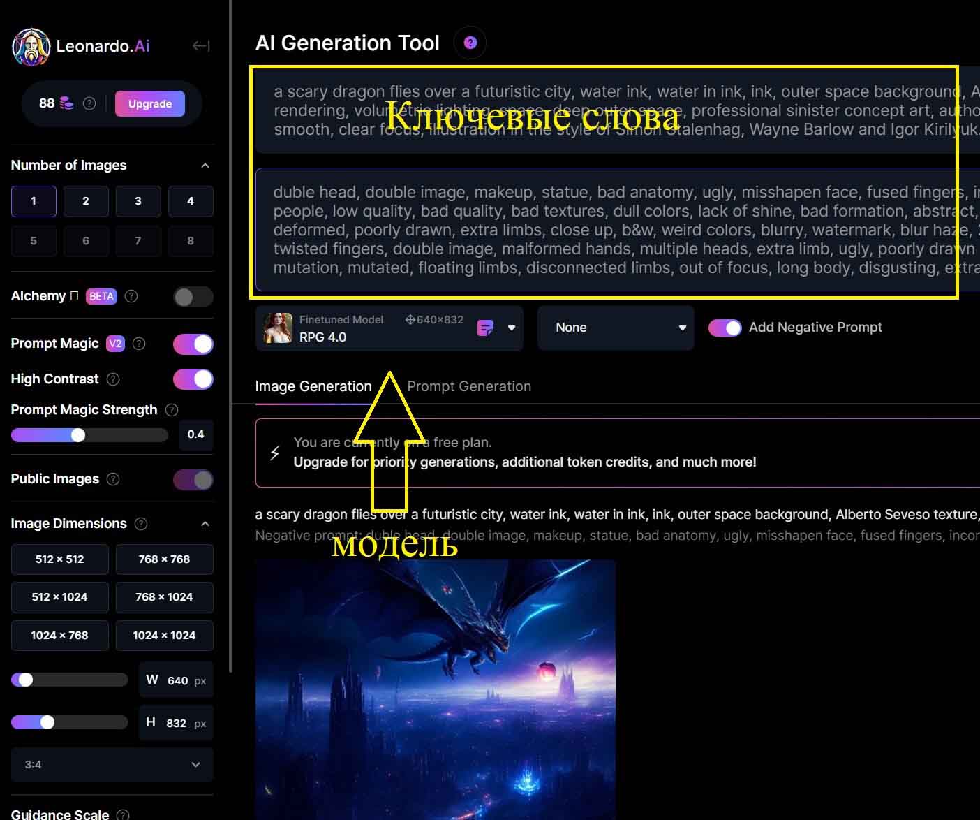 1. Задайте основной объект. Опишите его первыми ключевыми словами. Если хотите что-то более точное, не скупитесь на описания. Больше деталей и прилагательных. В нашем случае это будет не просто «Дракон», а «Страшный зубастый дракон летит над городом будущего». Вы уже догадались, что будем рисовать дракона? Почему? Это элементарно — всем нравятся драконы!