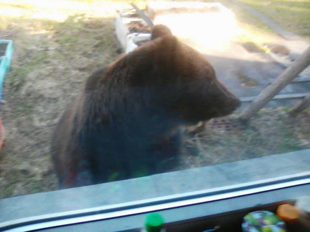 Но это была лишь первая часть приключения. Проснувшись ночью по нужде, я добрёл до выхода, начал этак осторожненько приоткрывать дверь (с мыслью: а вдруг там медведь?), открыл — а там действительно был медведь!