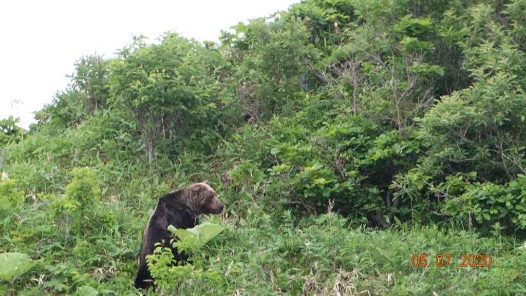 Всё лето мы не сталкивались с Подлым Бурундуком вблизи, но погранцы поведали, что на квадроциклах гнали его по берегу, для острастки постреливая в воздух, и раз я видел, как он удирал вниз с сопки от взрослого медведя, похожего на грустного пса.