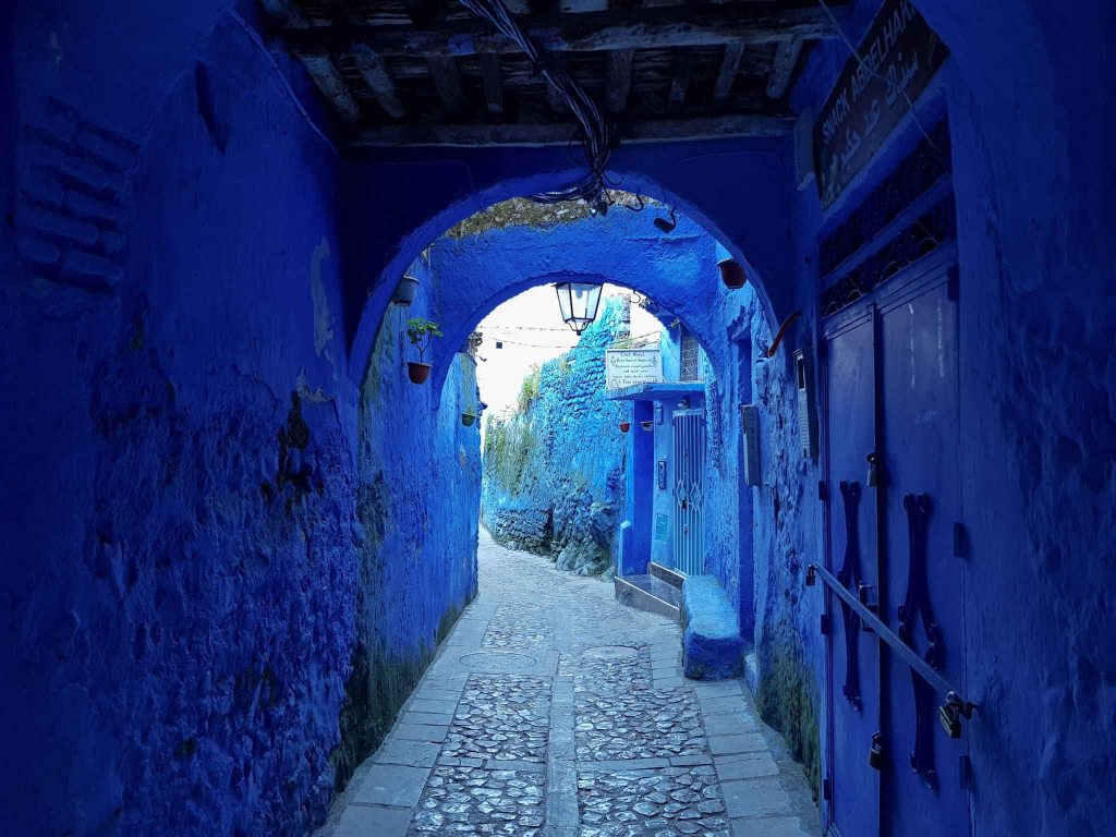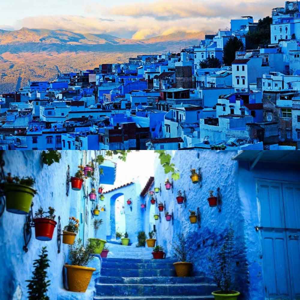 В нем можно отдохнуть от привычного многоцветия иных марокканских домов, столкнуться с толпами туристов, щедрыми восточными рынками, с терпким запахом пряностей, кожи, свежеиспеченной сдобы и национальных аппетитных блюд. Излюбленный путешественниками, он отличается своими уникальными, старинными, привлекающими взгляд голубыми домами, от самых светлых тонов до лазурных. Его название означает «взгляд на рога» и пошлó от двух горных, здешних вершинных хребтов. На протяжении столетий город считался священным, благодаря чему в полной мере сохранилась его средневековая архитектура. Издали, из-за аналогичного цвета строений, Шефшауэн даже можно принять за второе море у моря. Такой уникальный стиль задали ему бежавшие сюда после изгнания испанские евреи, нашедшие здесь свое пристанище от преследований, называвшие голубой цветом рая.