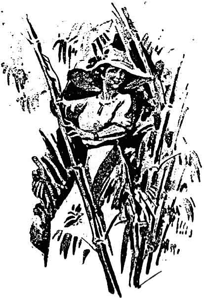 С крайней осторожностью отряд приблизился к самому берегу заросли — и вдруг случилось невероятное чудо: до сих пор неподвижно лежавшие прутья при нашем приближении разом поднялись от земли и заволновались, как будто во время бури, хотя в воздухе царствовала полная тишина.