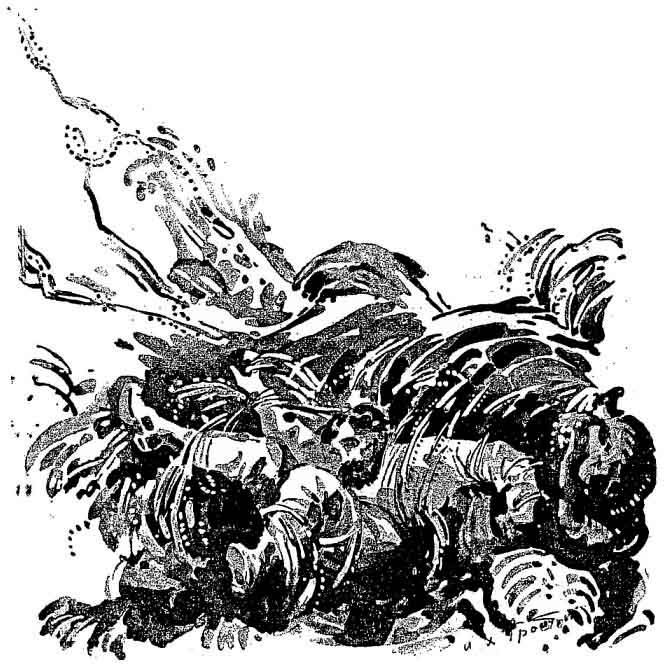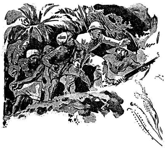 — Не робей! — крикнул Роберт, зажигая фитили на петардах. — Бросай! — скомандовал он. И в котловину полетело около десятка петард, выжигая на пути все окружающее.