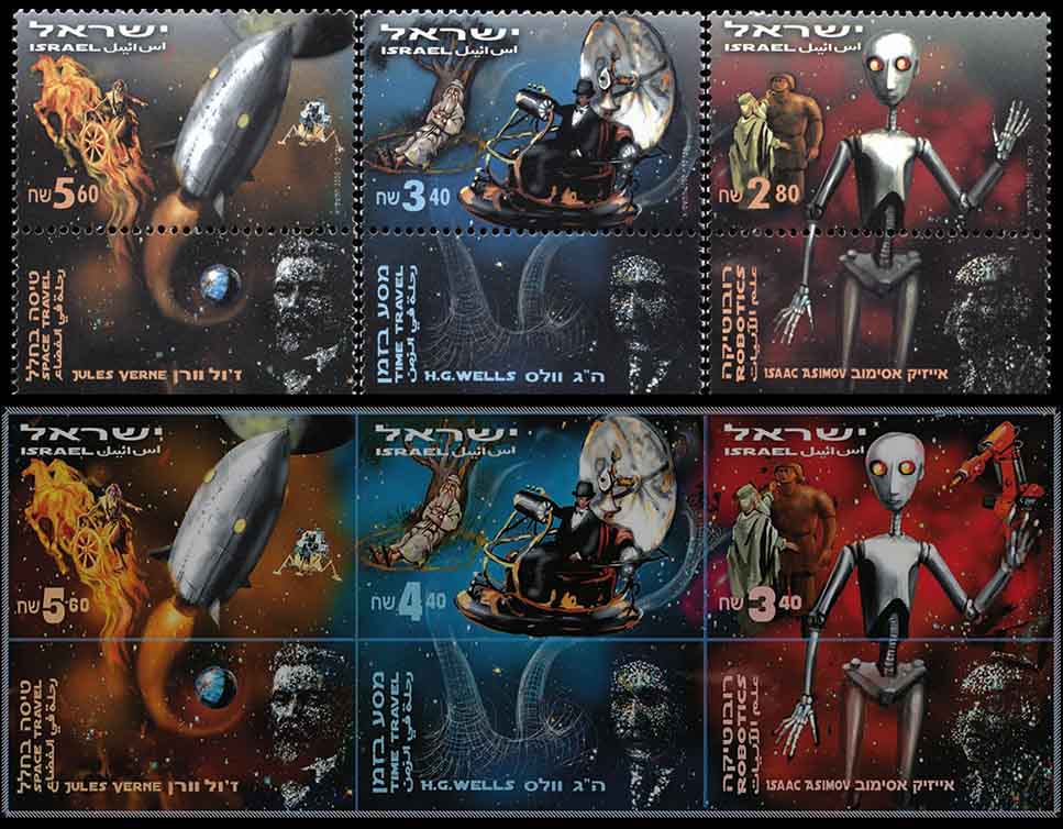 5 декабря 2000 года в Израиле выпущена серия почтовых марок «Научная фантастика» (в каталоге почтовых марок Michel № 1573—1575). На трёх почтовых миниатюрах «Роботехника», «Путешествие во времени» и «Космическое путешествие» изображены сцены из фантастических книг, легенд, портреты писателей-фантастов.