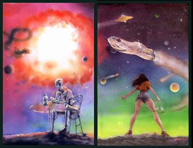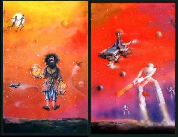 В книге Карен Хабер «Мастера изобразительного искусства научной фантастики и фэнтези» (Karen Haber. Masters of Science Fiction and Fantasy Art: A Collection of the Most Inspiring Science Fiction, Fantasy, and Gaming Illustrators in the World. — Beverly (MA): Rockport Publishers, 2011. — 224 p.) можно найти предварительный проект марок Израиля 2000 года. Для сравнения покажу выпущенные марки (вверху) и рисунок из книги (под марками).