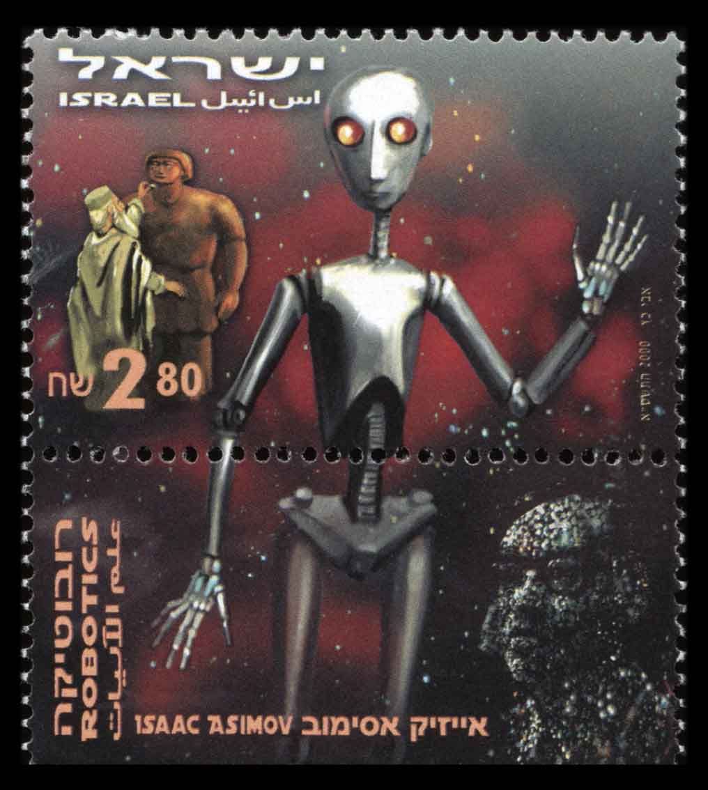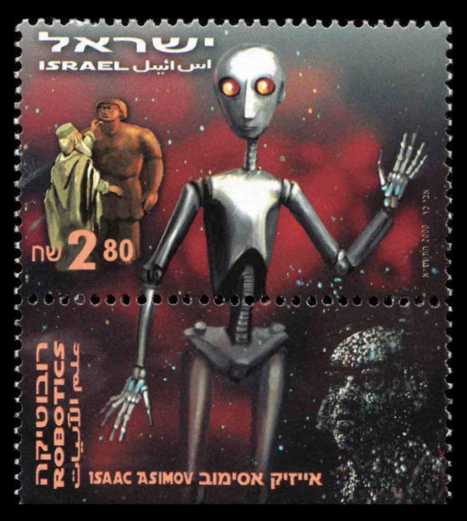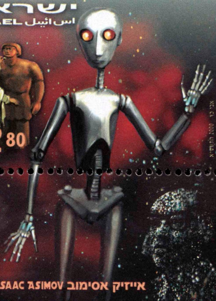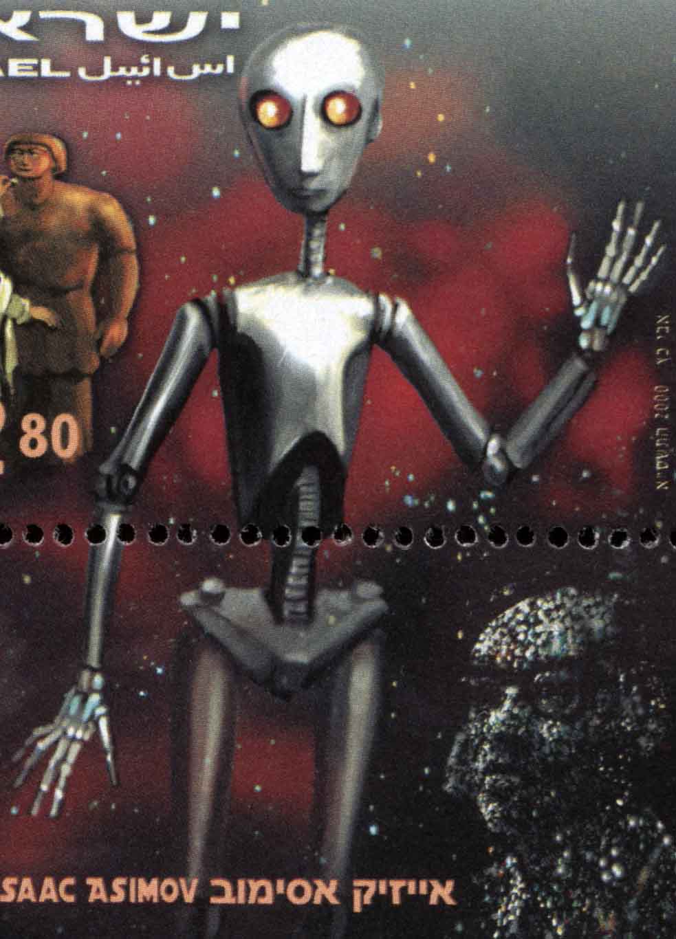 Первая марка посвящена А. Азимову и называется «Роботехника».