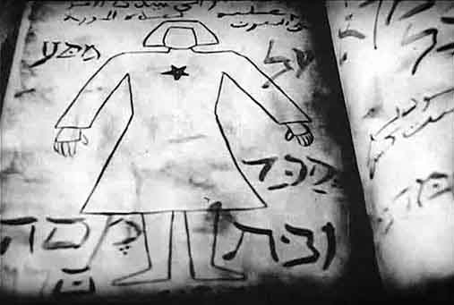 В германском фильме 1920 года Махараль сначала вкладывает пергамент в пятиконечную звезду, а затем закрепляет её на груди Голема.