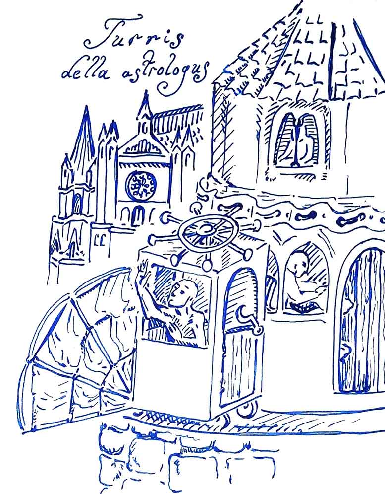 Курьезный случай произошел в 1334 году в Венеции. В преддверии Великого поста во время народных гуляний среди прочих украшений города была башня с парящим вокруг нее кораблем. Эта конструкция символизировала морскую победу над османами и была сооружена пленными турками. Офицер, руководивший работами, был образованным человеком, хорошо знакомым со всевозможными техническими диковинами. Он точно скопировал Turris della astrologus и сам желал занять место в кабине, чтобы разбрасывать оттуда на потеху толпы сладости. Идею не одобрили, сочтя катание турка в лодке над головами горожан насмешкой, добрые католики рисковать жизнью не пожелали, потому механизм был запущен без человека внутри. После праздников строителей башни наградили, вернув им свободу. Сложившейся же образ астрономического устройства для наблюдений за небом не изменился. Turris della astrologus все так же внушает страх суеверной публике.