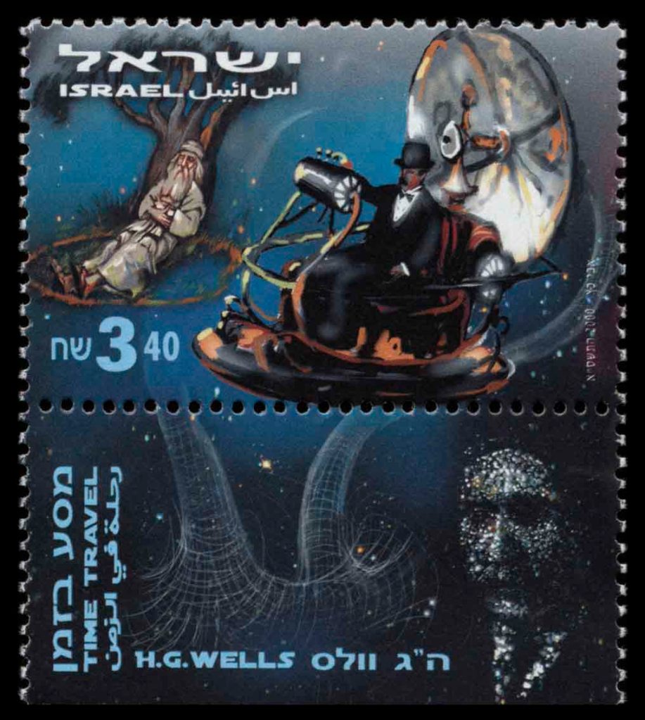 Вторая марка израильской серии «Научная фантастика» называется «Путешествие во времени» и посвящена книге Герберта Уэллса «Машина времени» (1895).