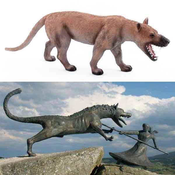А на территории, где происходили встречи со Зверем, «монстром из Сингле» и прочими «олене-волками», примитивный хищник мог сохраниться, пожалуй, единственным способом: как небольшой всеядный зверек. Пример тому — опоссумы в обеих Америках, особенно в Северной, фауна которой во многом приблизилась к евразийской. Но это отнюдь не вариант Hyaenodon gigas. Тем более что сходство его с обобщенным образом Жеводанского Зверя на памятнике во французском городе Сог обманчиво: проект этой скульптуры был создан в 1988 году (сам памятник был открыт и вовсе в 1995 году), так что автор, Филипп Кеппелин, намереваясь восславить стойкость французского населения перед лицом обрушившегося на него «древнего зла», вполне мог держать в уме гиенодона как некий аналог ефремовского зверя гишу.