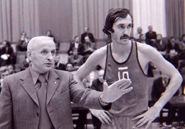 Вскоре разминка закончилась, и команды окружили своих тренеров. Не помню, кто тогда руководил сборной Украины, но внимание болельщиков сосредоточилось на тренере сборной СССР, Александре Яковлевиче Гомельском, известном всему баскетбольному миру. Это его Георгий Жуков, которого в народе именовали Маршалом Победы, назвал Маршалом Баскетбола. Впрочем, спортивные обозреватели «присвоили» Гомельскому не менее почётный титул — Профессор Баскетбола.