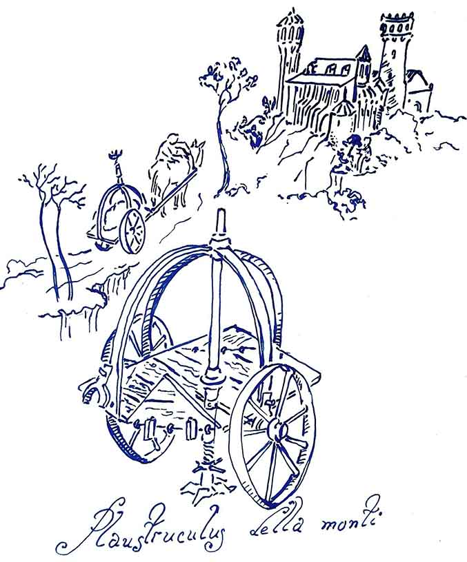 Тайну появления Plaustruculus della montis вдали от человеческого жилья — а судя по описаниям очевидцев, это была именно колесница брата Джеронимо — наверняка знали монахи одной из близлежащих обителей. Древняя диковинка, будь она найдена случайным человеком, могла спровоцировать чернь. Защищая свою обитель от погрома, а себя от напрасных подозрений, святые отцы пожертвовали уникальным механизмом. Такое решение можно было бы назвать трагическим, если бы не надежда на то, что аналоги повозки минорита сохранились в иных монастырях или были выкуплены нашими современниками — ценителями старины.