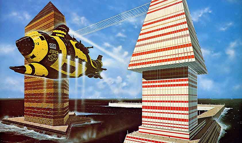 «Материалом для постройки воздушных лодок служило дерево или металл. Для первых брались очень тонкие доски, но они пропитывались каким-то раствором, который, не увеличивая тяжести, придавал им прочность кожи. Они обладали замечательной крепостью и лёгкостью. Для вторых — употреблялся сплав из двух белых металлов и одного красного. В результате получалось белое металлическое вещество, похожее на алюминий, но ещё гораздо более лёгкое. Весь шероховатый сруб воздушного судна покрывался плотным слоем этого металла, принимавшего форму судна и спаянного, если это было нужно, при помощи электричества. Однако поверхность этих кораблей, были ли они из дерева или металла, всегда была ровной и без видимой спайки, а в темноте они блестели, как бы покрытые светящейся штукатуркой. С виду они были похожи на лодки, но только крытые, так как на открытом мосту — при той скорости, с которой они пускались, — пассажирам оставаться было бы крайне неблагоразумно, если не невозможно.