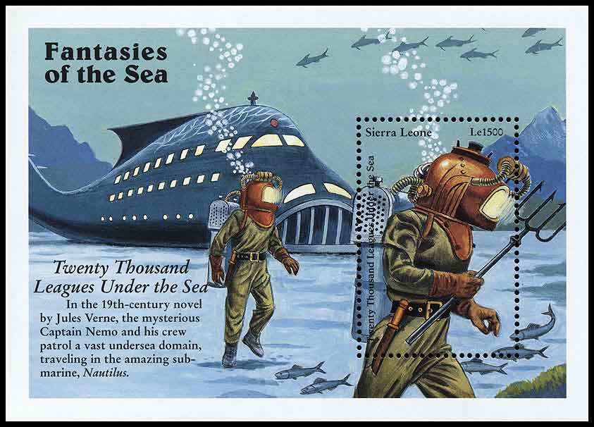 В романе Жюля Верна XIX века таинственный капитан Немо и его команда патрулируют обширную подводную область, путешествуя в удивительной подводной лодке „Наутилус“».