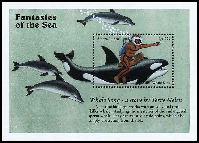 Рисунок двадцать девятого блока отсылает к научно-фантастической повести Терри Мелена «Песня кита», впервые опубликованной в 1974 году в сентябрьском номере журнала фантастики «Analog». В 1975 году «Песня кита» номинировалась на американскую премию в области фантастики «Locus» в категории «Короткая повесть». В 1980 году Терри Карр включил повесть в антологию коротких научно-фантастических произведений «Dream’s Edge» о будущем планеты Земля. Текст на поле блока: