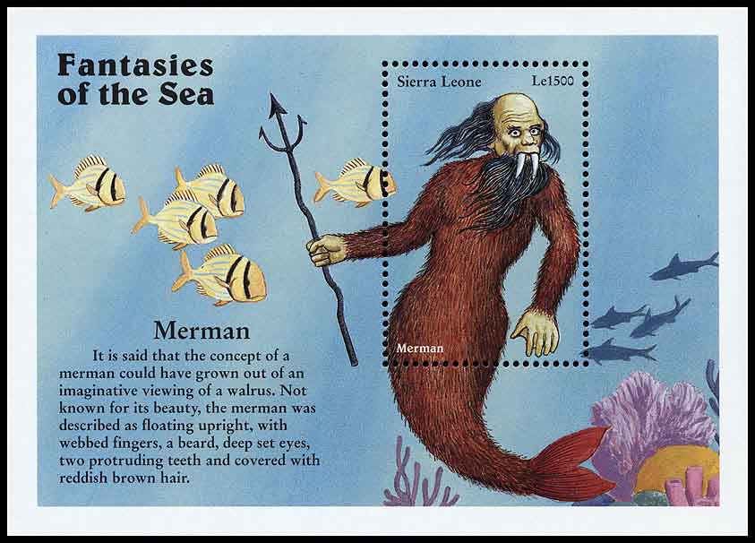 Говорят, что понятие водяного могло появиться из воображаемого восприятия моржа. Не блещущий красотой, водяной описывался как плавающий в вертикальном положении, с перепонками на пальцах, бородой, глубоко посаженными глазами, двумя выступающими зубами и покрытый красноватыми каштановыми волосами».
