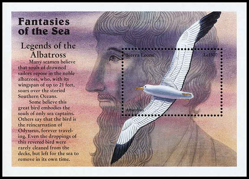 Некоторые полагают, что эта великая птица воплощает только души морских капитанов. Другие говорят, что птица — перевоплощение Одиссея, путешествующего вечно. Даже помёт этой уважаемой птицы редко счищают от палубы, в море он удаляется естественным путём».
