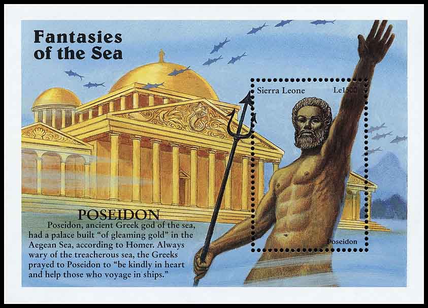 Согласно Гомеру, у Посейдона, древнегреческого бога моря, был дворец в Эгейском море, построенный „из сияющего золота“. Всегда опасаясь предательского моря, греки молились Посейдону, чтобы тот „был доброжелательным в сердце и помогал тем, кто плавает на судах“».