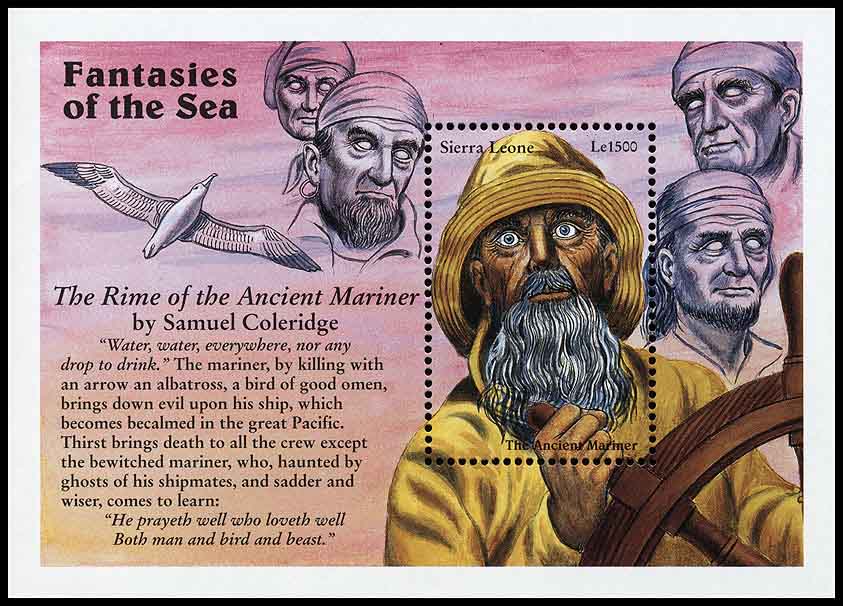 „Вода, вода, одна вода, Мы ничего не пьём“. Моряк, убивая стрелой альбатроса, птицу хорошего предзнаменования, обрушивает зло на свой корабль, который попадает в штиль в великом Тихом океане. Жажда приносит смерть всей команде, кроме околдованного моряка, который, преследуемый призраками своих товарищей по плаванию и более печальный и более мудрый, приходит к пониманию:
