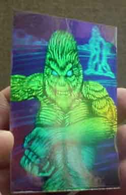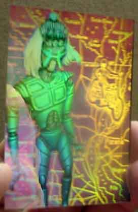 Выше уже отмечалось, что текст на блоке сокращён по сравнению с текстом на голографической карточке, поэтому воспользуемся более подробным описанием с карточки. В наборе «(There Are) Aliens Among Us» это карточка № 5.