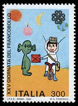 Что же касается трёхглазости, то, помимо никарагуанского блока, трёхглазых пришельцев можно обнаружить на нескольких марках, например на почтовой миниатюре Италии 1983 года (Michel № 1865), посвящённой Дню марки.