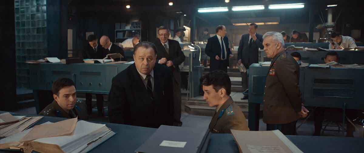 В отличие от той же «Гравитации», космическая часть картины интересна не только космосом, но тем, что происходило в это время в центре управления полетом. Напряженность параллельного монтажа еще никто не отменял, и здесь он «служит свою службу». И это не только Королев. Потрясающим моментом фильма является тот, когда корабль уходит в тень, космонавты, скорее всего, погибли и Левитан (прекрасная игра Авангарда Леонтьева) записывает на магнитофон некролог…