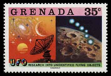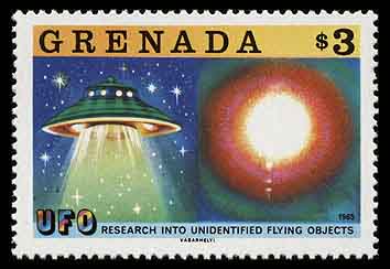 Как уже отмечалось, выпущено немало марок с изображением НЛО. Так, в Гренаде в 1978 году появилась серия марок «Исследование НЛО» (Michel № 919—921, block № 75). Этот почтовый выпуск интересен тем, что с неожиданной стороны показывает одну из сторон международную жизнь этого государства.